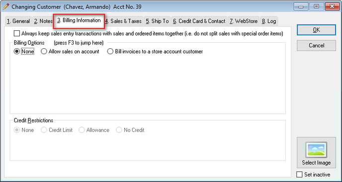 - Enter any Terms, Alt Act No, and Default PO No. if desired