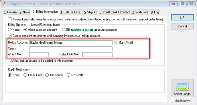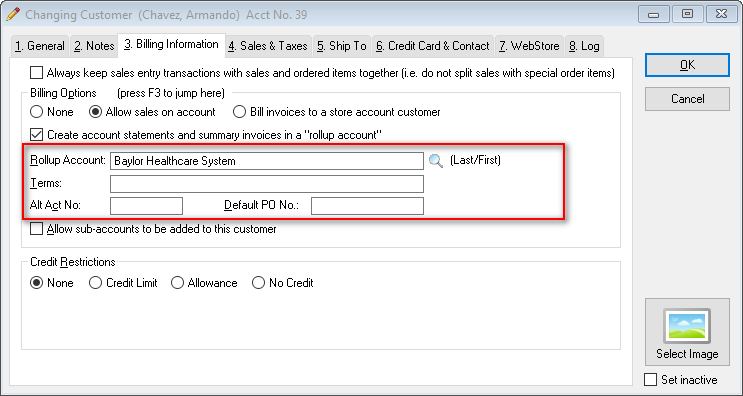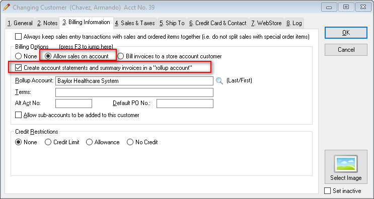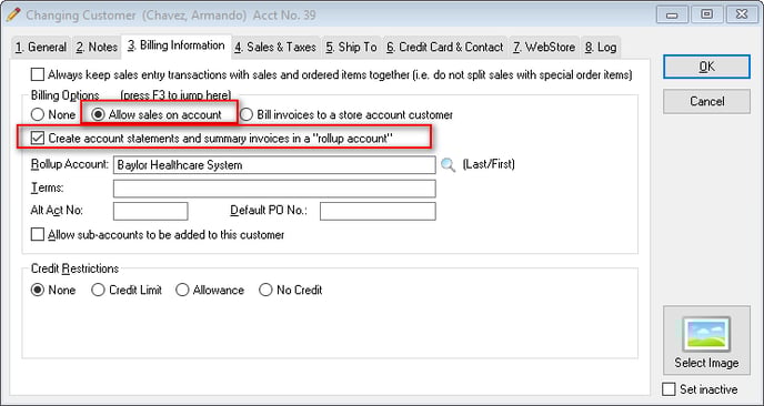 - Check the box that says Create account statements and summary invoices in a “rollup account"